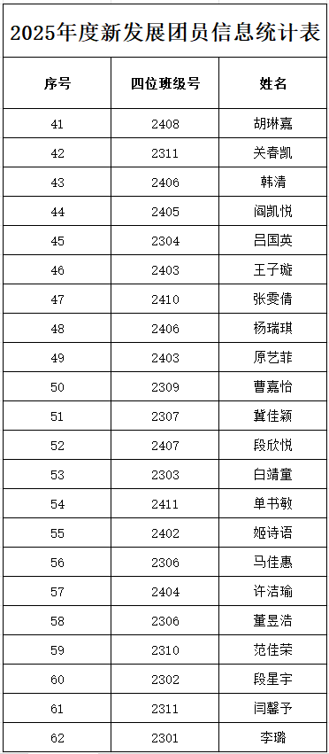 2025年度新发展团员信息统计表